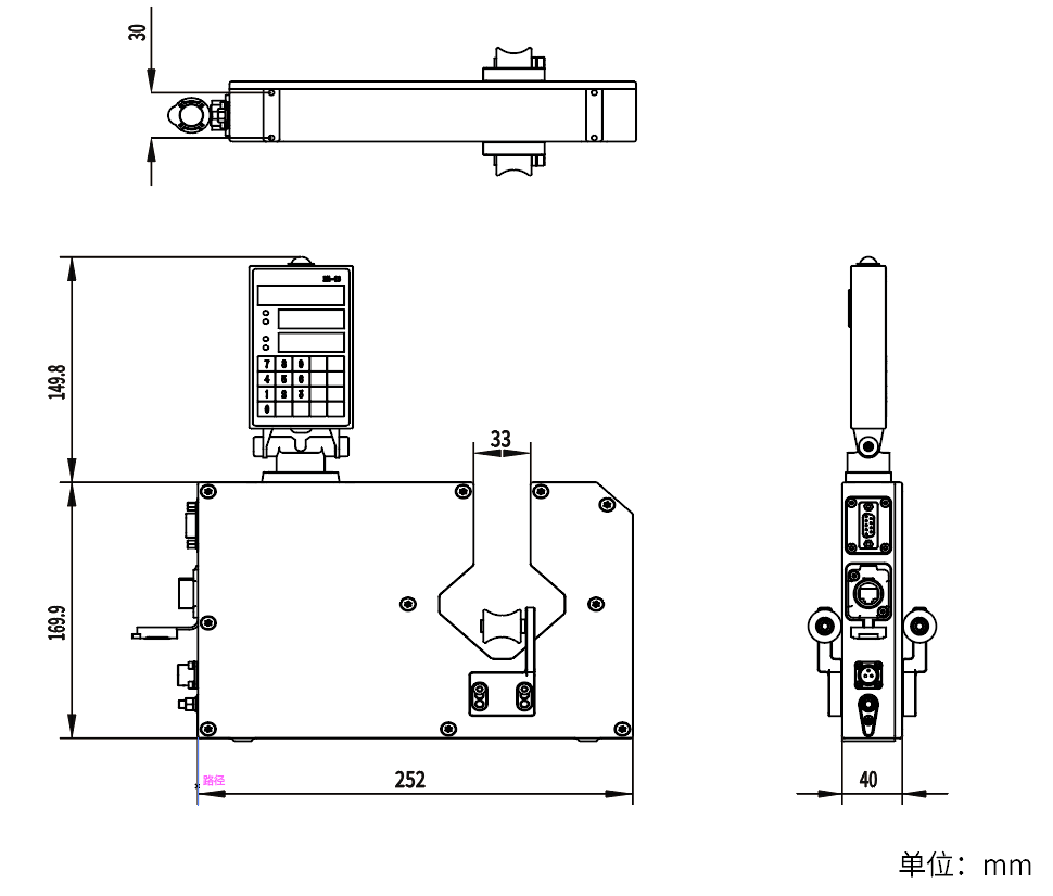 ● 适用于任何线材,工件的在线测量;● Fθ光学透镜、非接触式测量、不受线材抖动影响;● 多功能、自由旋转操作面板,可选配全键盘;● 内置PID调节模块自动控制线径;● 两路模拟量输出,多功能远程数字接口,同时连接1个控制器2个显示器;● 具备 RS232/485、PROFIBUS、MODBUS接口;● 可选配品质管理软件,记录直径变化曲线;● 采用长寿命半导体激光,瑞士进口无刷电机,适应恶劣环境连续工作。
